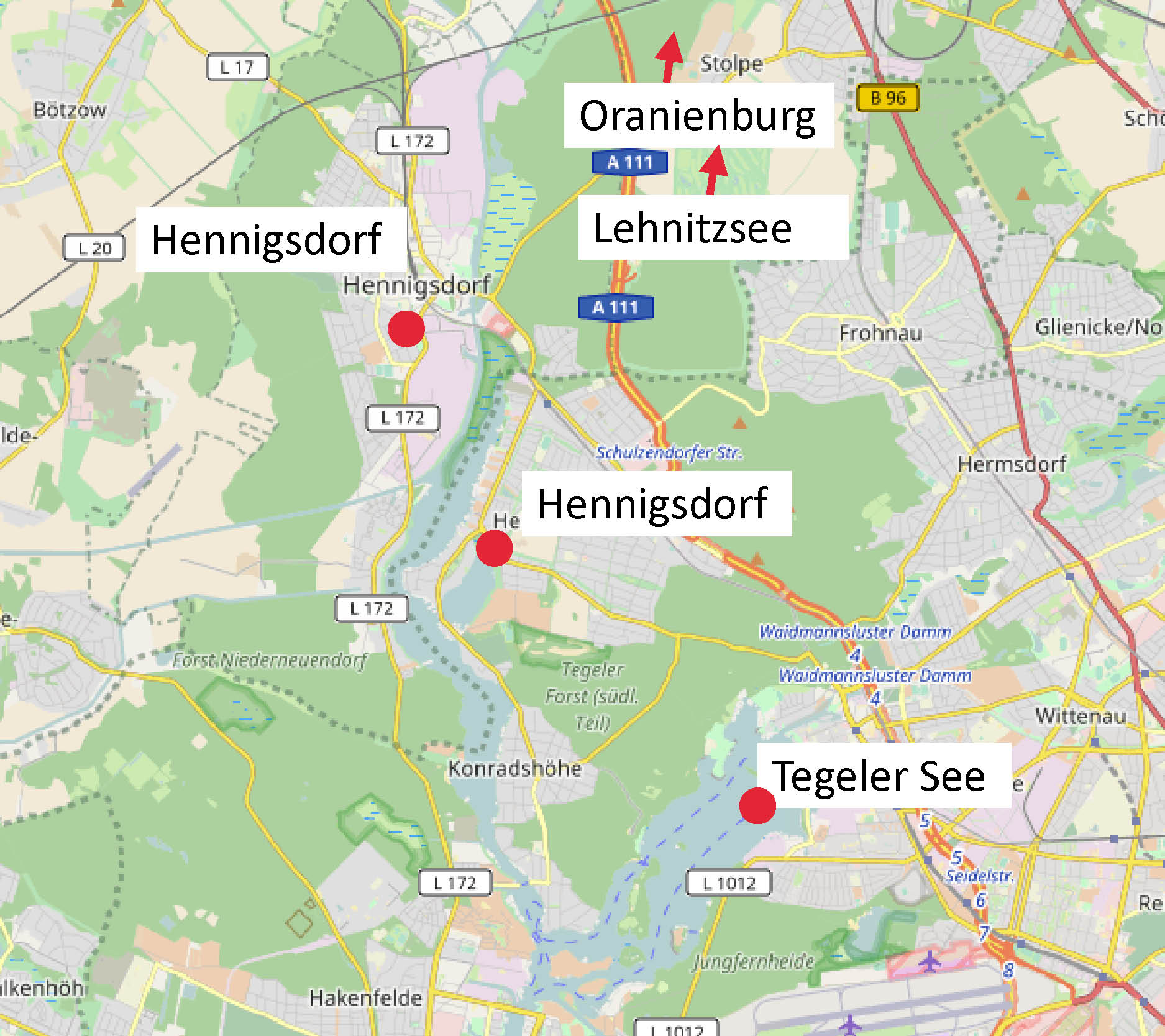 Karte Richtung Oranienburg