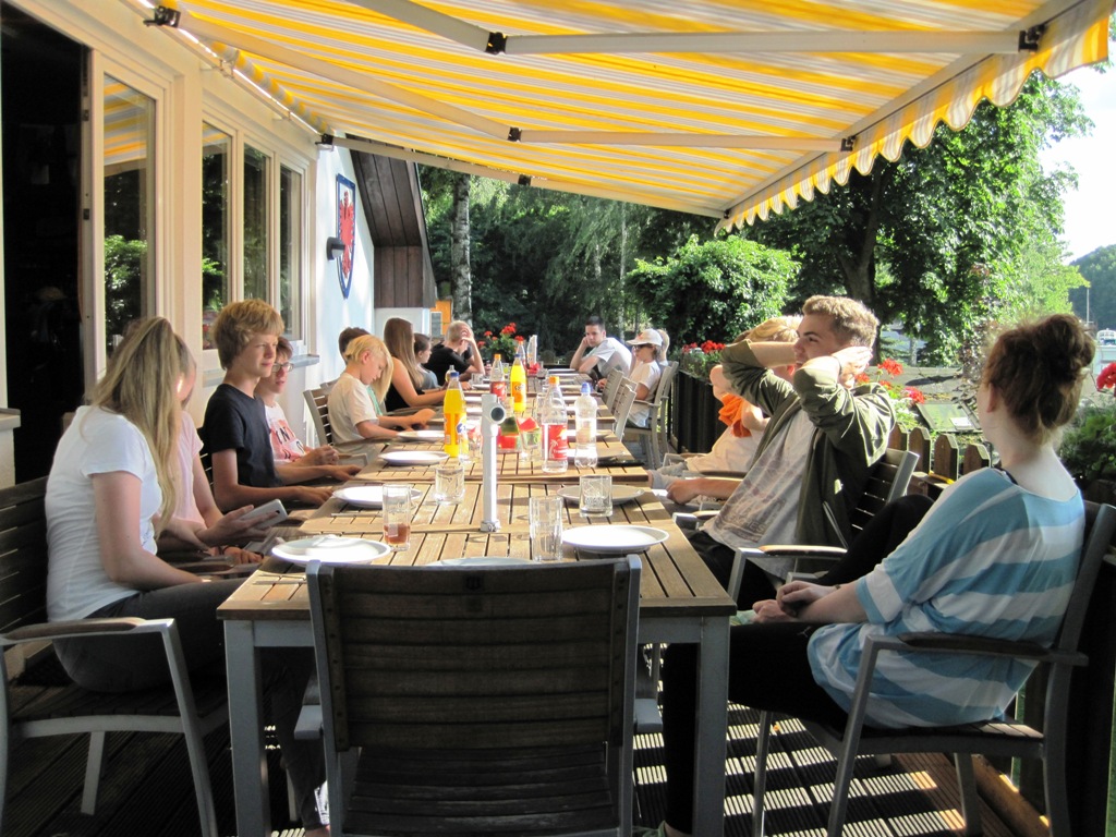 Abendessen auf der Terasse des Bootshauses