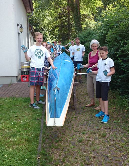 Die Jugend streicht ein Boot